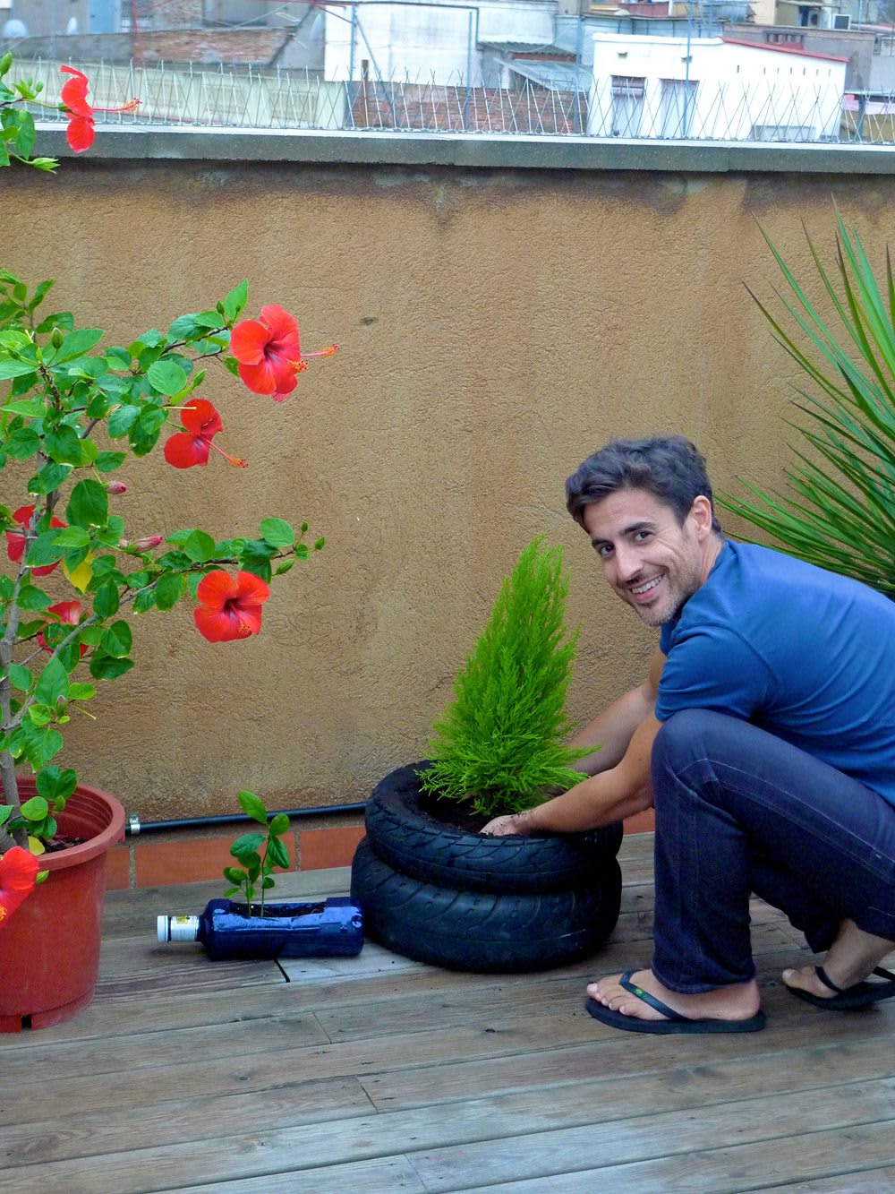 Planting a small tree on the terrace of my apartment to show that every tree makes a difference.. even a very small one that’s now surrounded by the big trees in the streets of Barcelona!