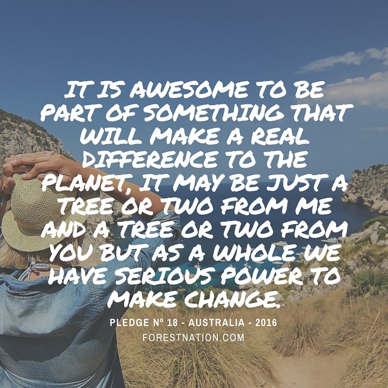 “It is awesome to be part of something that will make a real difference to the planet, it may be just a tree or two from me and a tree or two from you but as a whole we have serious power to make change.”