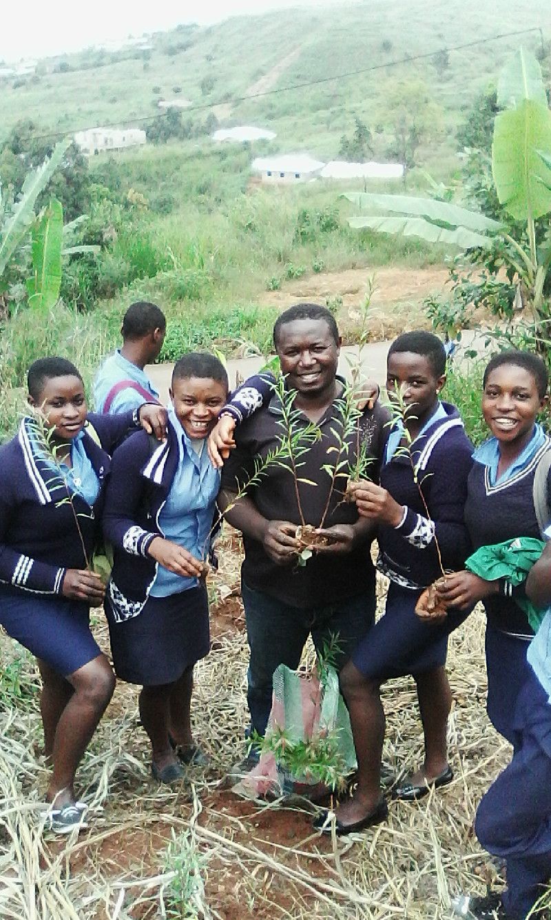 Farmer Tantoh encouraging students to plant trees