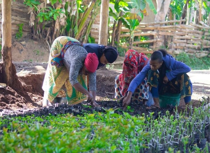 Fruit, Moringa, Coffee seedlings are provided to families to plant on their farms.