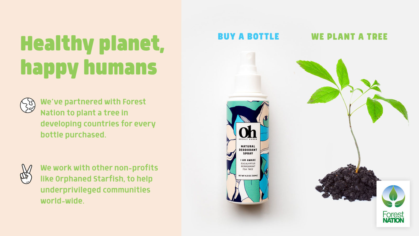 We’re excited to partner with ForestNation and Orphaned starfish to help the planet and improve society. We love the fact we can now empower our customers to make a difference by planting a tree with every product purchased.