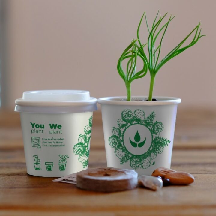– Tree cups are biodegradable and contain everything you need to grow your own trees. It’s a complete tree growing kit with tree seeds and instructions on how to plant it.